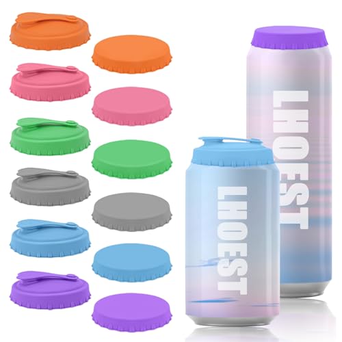 LHOEST 12 stycken dryckesburkar i silikon, burkförslutning, dryckesburkar, lock, silikonkrona, burklock, dryckesburk, återanvändbar, lock för dryckesburk, ölburksskydd