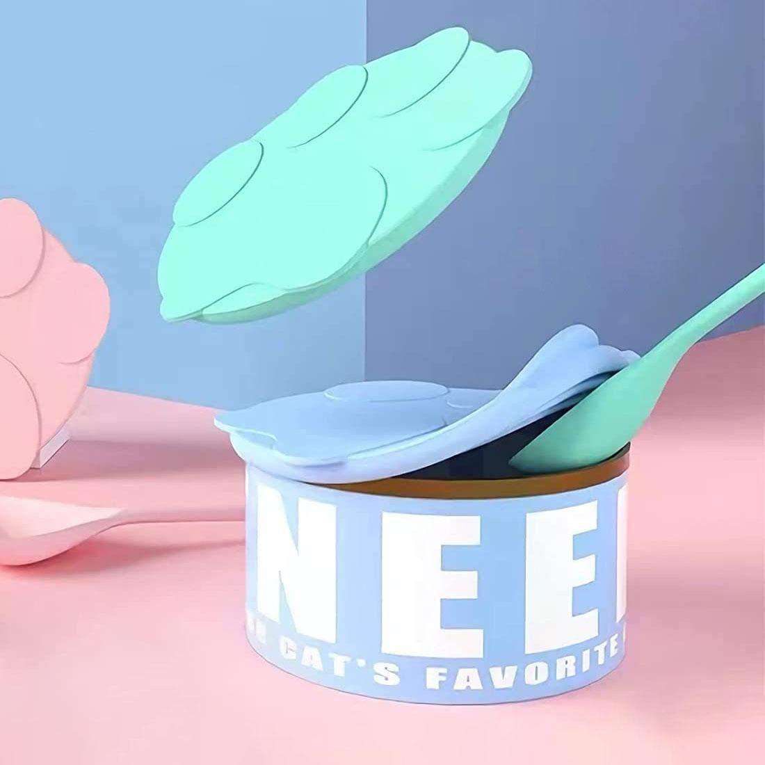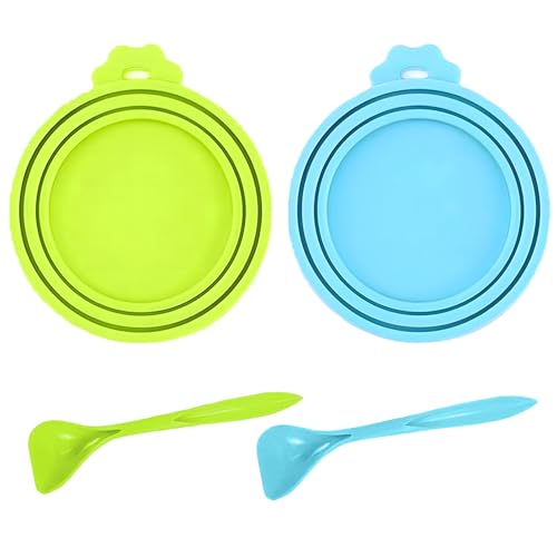 Diffaxy 2 stycken lock för burkar med 2 skedar, universalstorlek burklock, silikonlock för hundmat och kattmat, lämplig för 3 burklock i standardstorlek – blå, grön