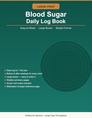 Large Print Blood Sugar Daily Log Book: Easy-to-Read Diabetic Glucose Tracker for Seniors | Big Text, Large Writing Boxes | Before & After Meals, Fasting, Insulin | 8.5x11 Inches