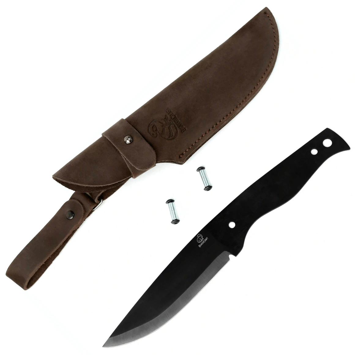 BPS Knives HK1 CSH - Utility Knife - Utomhuskniv med fast blad - Camping Bushcraft Kniv med läderslida - Kolstål Full-Tang Fixed Blade Knife