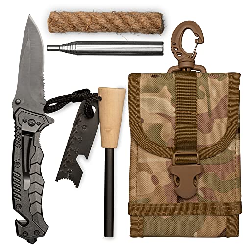 Firesteel överlevnadssats - brandtändarkit - eldsten överlevnad - militär väska - hopfällbar kniv - tillbehör för camping, vandring, fiske, jakt, överlevnad, Bushcraft-tändare, eld juterep