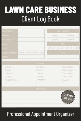 Lawn Care Business Client Log Book: Professional Appointment Planner & Organizer for Landscaping, Mowing, Small Business & Entrepreneurs | Easily ... | Compact Size, 6X9 Inches, 124 Pages