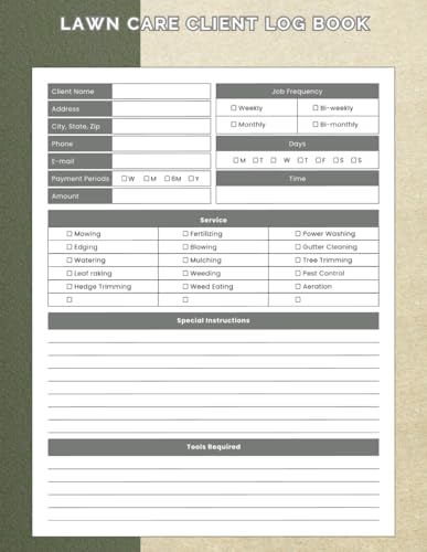 Lawn Care Client Log: Track Client Info, Job Schedules, and Service Details for a More Organized and Profitable Lawn Care Business