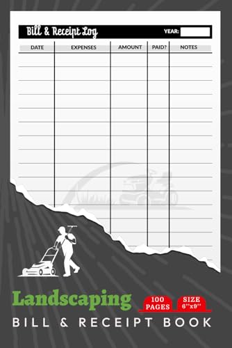 Landscaping Bill and Receipt Book: Lawn Care Business Payment Tracker and Organizer | 100 Pages