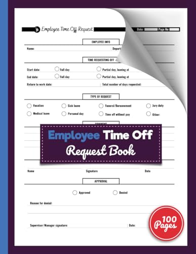 Employee Time Off Request Book: Day Off Request Forms for Daycare, Preschool, Child Care Business | with Index Page, 100 Pages