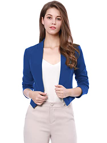 Allegra K Women's Work Office Blazer Collarless Business Casual Suit Jacket Cropped Blazer Medium Blue
