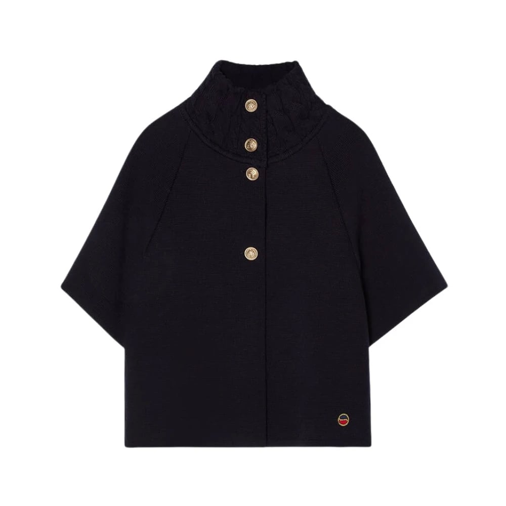 BUSNEL Lisalou Cableknit Collar Cape - Navy - S