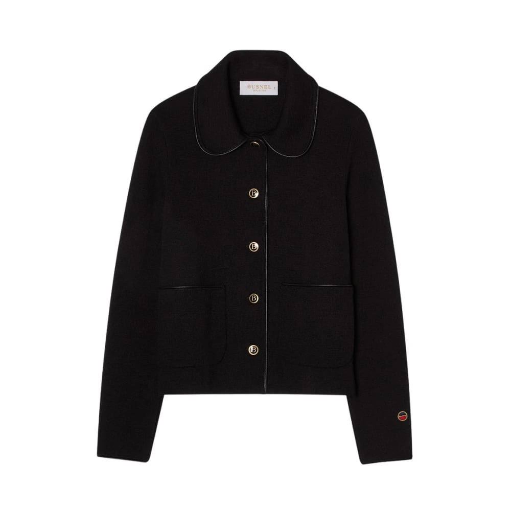 Busnel, Stickade Tröjor , Dam, S, Nylon, Elegant Svart/Offwhite Jacka