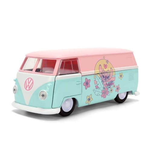 Jada Toys Stitch bil VW buss 1961 i fiskedesign (13,5 cm) – Volkswagen modellbil av metall med dörrar för öppning, Disney-leksak för Lilo och Stitch för fans och barn från 8 år