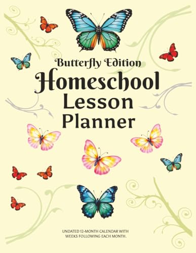Butterfly Edition Homeschool Lesson Planner: 12-month undated calendar, with sections for weekly curricula after each month.