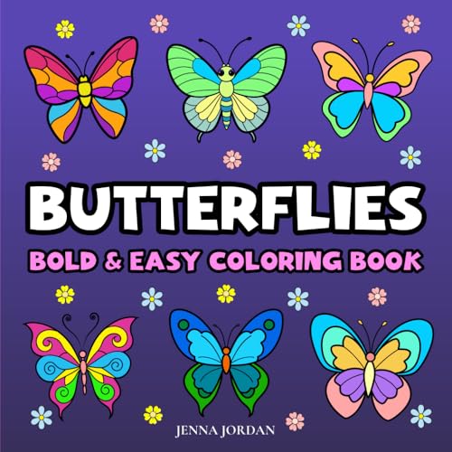 Bold and Easy Butterfly Coloring Book: 50 Fun and Relaxing Coloring Pages for Adults, Teens and Beginners