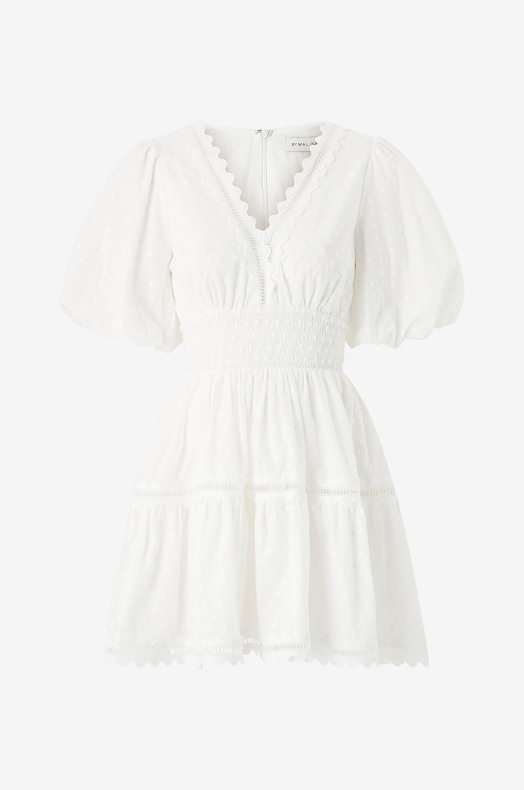 By Malina - Klänning Elvira V-neck Mini Dress - Vit