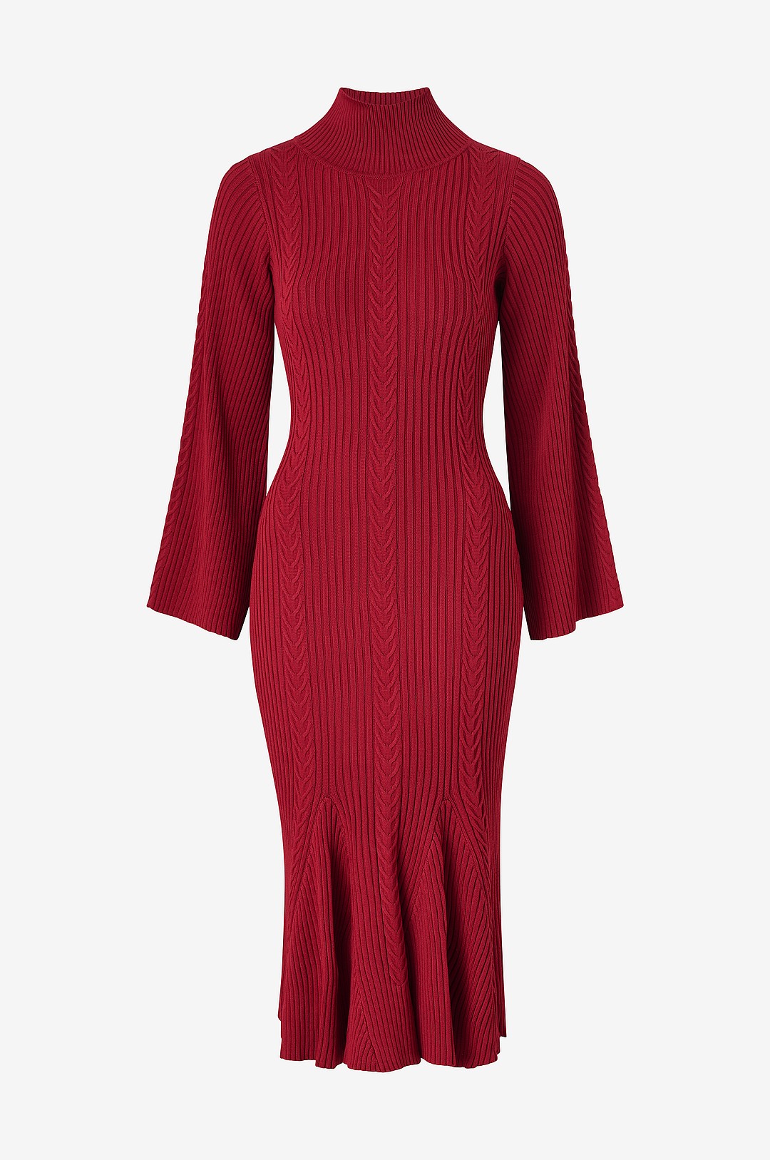 By Malina - Klänning Janice Polo Neck Knitted Maxi Dress - Röd