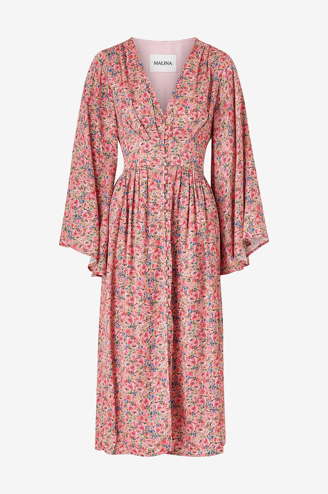 By Malina - Klänning Auden V-neck Satin Midi Dress - Rosa