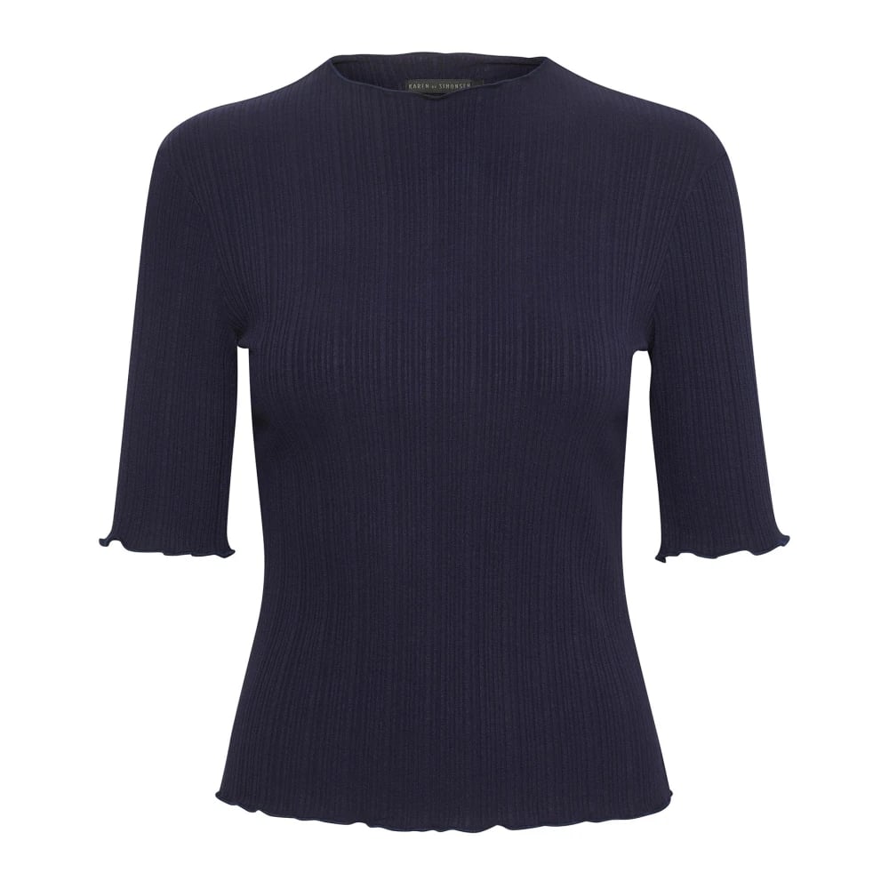 Karen by Simonsen, Toppar , Dam, 2Xs, Natt Himmel T-shirt med Rynkdetaljer
