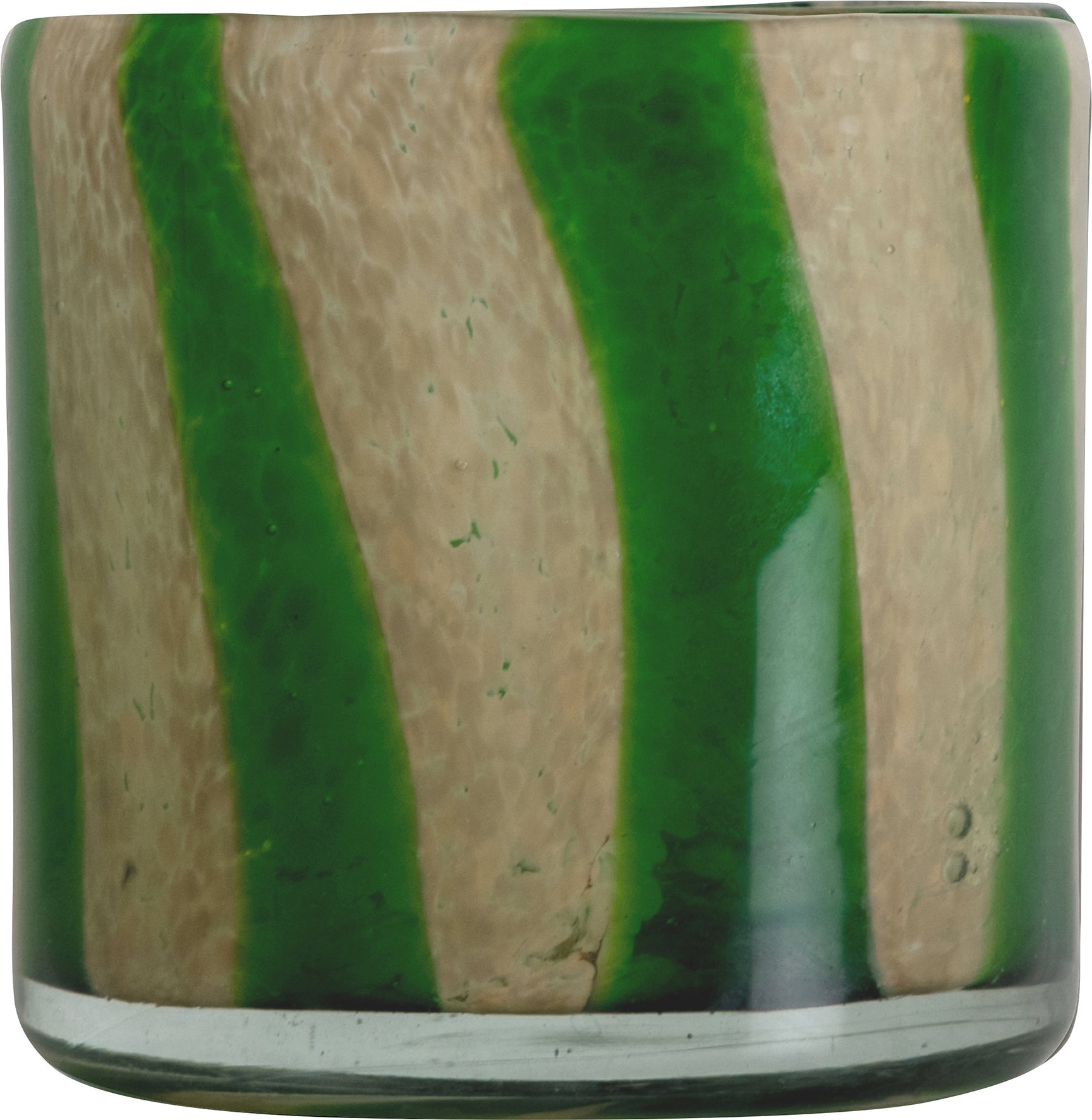 ByON Calore XS ljushållare – handgjord lykta av glas i dimrosa med fina sneda ränder – multifunktionell som vas, ljushållare eller skål – kompakt 10 x 10 x 10 cm, 5280602745
