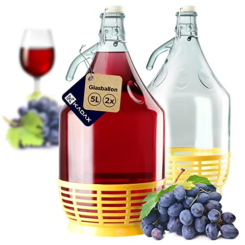 KADAX Vinballong, glasballong för vin, vinfat i glas, jäsningsballong, vinfat i glas, bygelflaska med korg, jäsningstank för vin