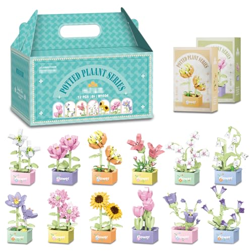 12 st miniblommor, byggklossar för suckulenta växter, byggklossar, konstgjorda blommor, växtkollektion, byggblock, leksaksblock, gör-det-själv manuell aktivitet för vuxna, barn