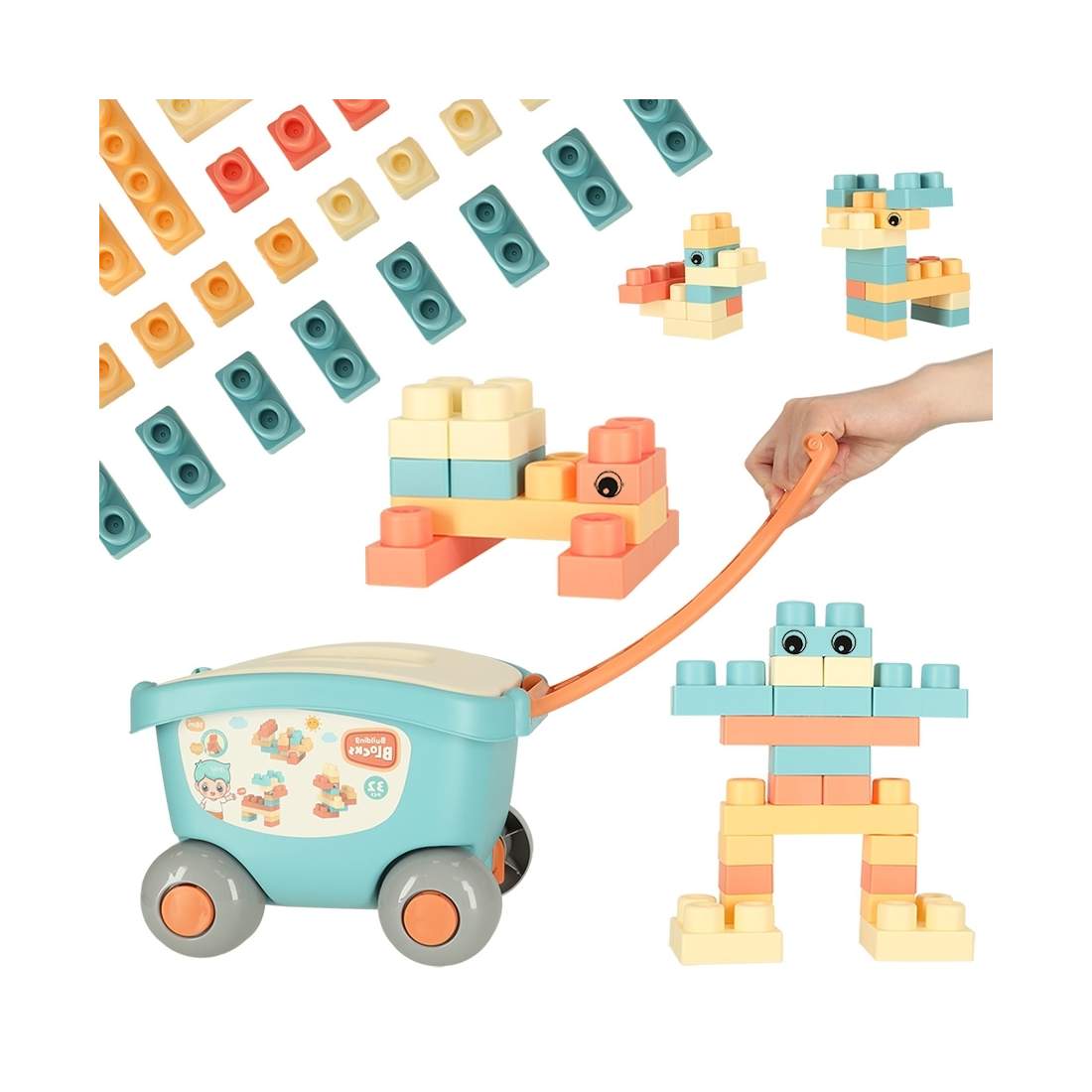 Pastellfärgade Byggblock i Hjulbehållare, 32 st
