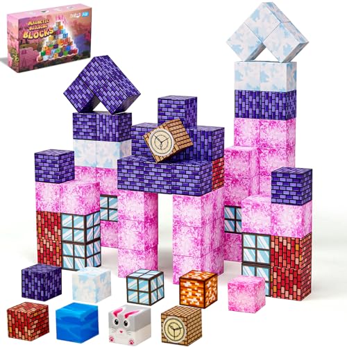 Goody King Magnetiska Byggstenar med 100 st Magnetiska Kuber, Bygg din is Och Snövärld, Montessori Leksak från 4 år Present till Pojkar/Flickor Magnetiskt Byggblock