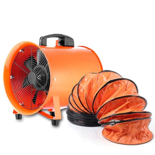 SHZICMY Industrifläkt bärbar byggfläkt fläkt fläkt byggfläkt axialfläkt byggfläkt ø 250 mm axialfläkt med 10 m PVC-slang, axial rörfläkt, rörfläkt, fläkt 2580 m³/h