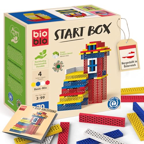 Bioblo Start Box Basic-Mix med 70 byggklossar | Hållbara byggklossar för barn från 3 år | Träbyggklossar för barnleksaker