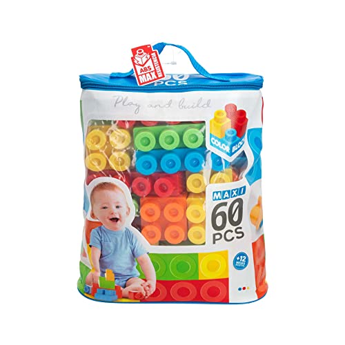 ColorBaby - Byggklossar för barn, 60 stycken, babyleksaker 1 år, väska byggdelar