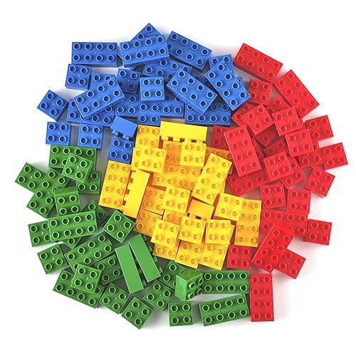 Strictly Briks Toy stora byggklossar för barn och småbarn, kompatibla med alla större märken, blå, grön, röd och gul, 108 st.