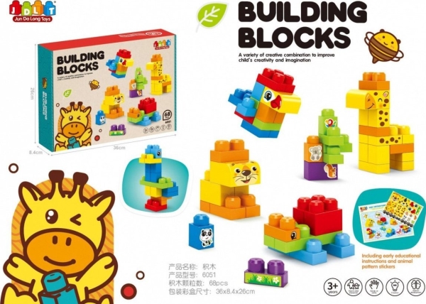 Uppsättning Byggklossar För Barn 68 El. Djurparksdjur + Klistermärken