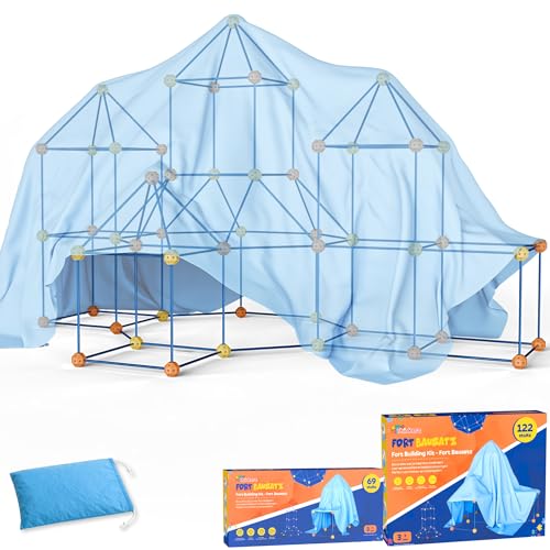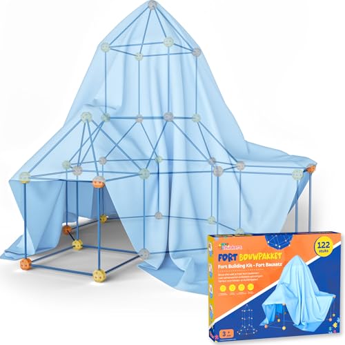 Byggsats Koja Barn XL, 122 Delar med 76 Stänger & 46 Kopplingskulor, Kreativ STEM-leksak för att Bygga Fort, Tält & Slott, Inomhus & Utomhus, Stabilt Byggset för Fantasilek