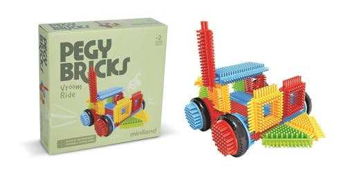 Miniland - Pegy Bricks: Vroom Ride - Byggsats för barn med 22 delar för att montera en bil, stimulera fantasi, motorik och symboliskt spel, från 2 år