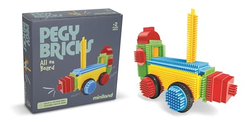 Miniland - Pegy Bricks: All On Board - Byggsats för barn med 22 stora delar för att skapa ett tåg, kreativt spel för att utveckla fantasi och motorik, från 2 år