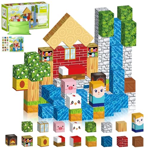 BYTANA Magnetiskt byggset för barn, 68 stycken - 3D-magnetblock, pedagogisk leksak för att utveckla kreativitet och färdigheter, perfekt present till barn över 3 år