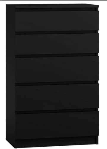 Byrå 5 lådor 70 cm, färg: mattsvart, 70 x 39 x 125 cm