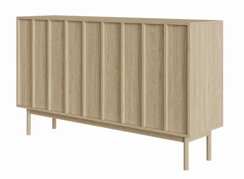 OLIVIBED Skänk med 4 strukturerade dörrar, byrå med gyllene handtag och förvaringsutrymme, komodenskåp med höjdjusterbara hyllor, köksskåp för vardagsrum och sovrum, 150 x 40 x 82 cm, vit