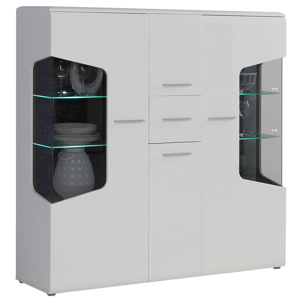 BIM Furniture Byrå Pafos 150 cm med fräsad front, MDF-skänk, highboard, skåp, öppna hyllor, bufett (svart)