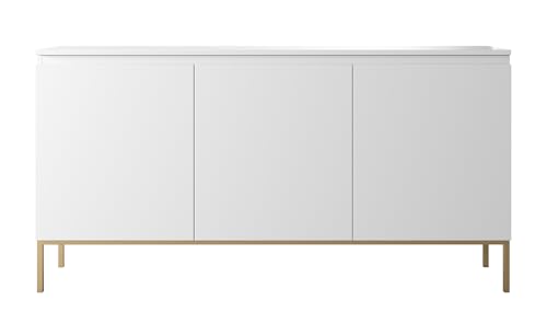 Selsey Byrå skåp med 3 dörrar 77 x 150 cm på gyllene ben förvaringsskåp för sovrum vit bemmi, en storlek