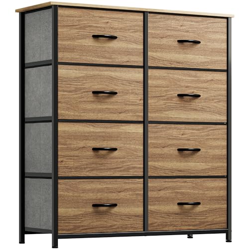 YITAHOME Byrå med icke-vävt tyg, 8 lådor förvaringsenhet för sovrum, vardagsrum, garderob, robust stålram, lättdragna tygfack och trätopp, tygbyrå