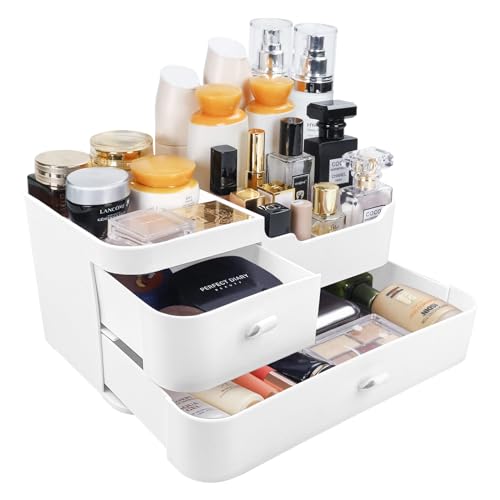 Relota Sminkförvaring, Sminkförvaringssystem med 2 Lådor, Vit, för Byrå, Sovrum, Badrum