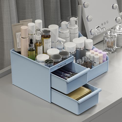 DancesCat Organisatorer för Kosmetika, Kosmetiska Organisatörer med stor Kapacitet för Läppstift, Hudvårdsorganisatör för Fåfänga, Idealisk Skrivbordsorganisatör för byrå och Badrum (Blå)