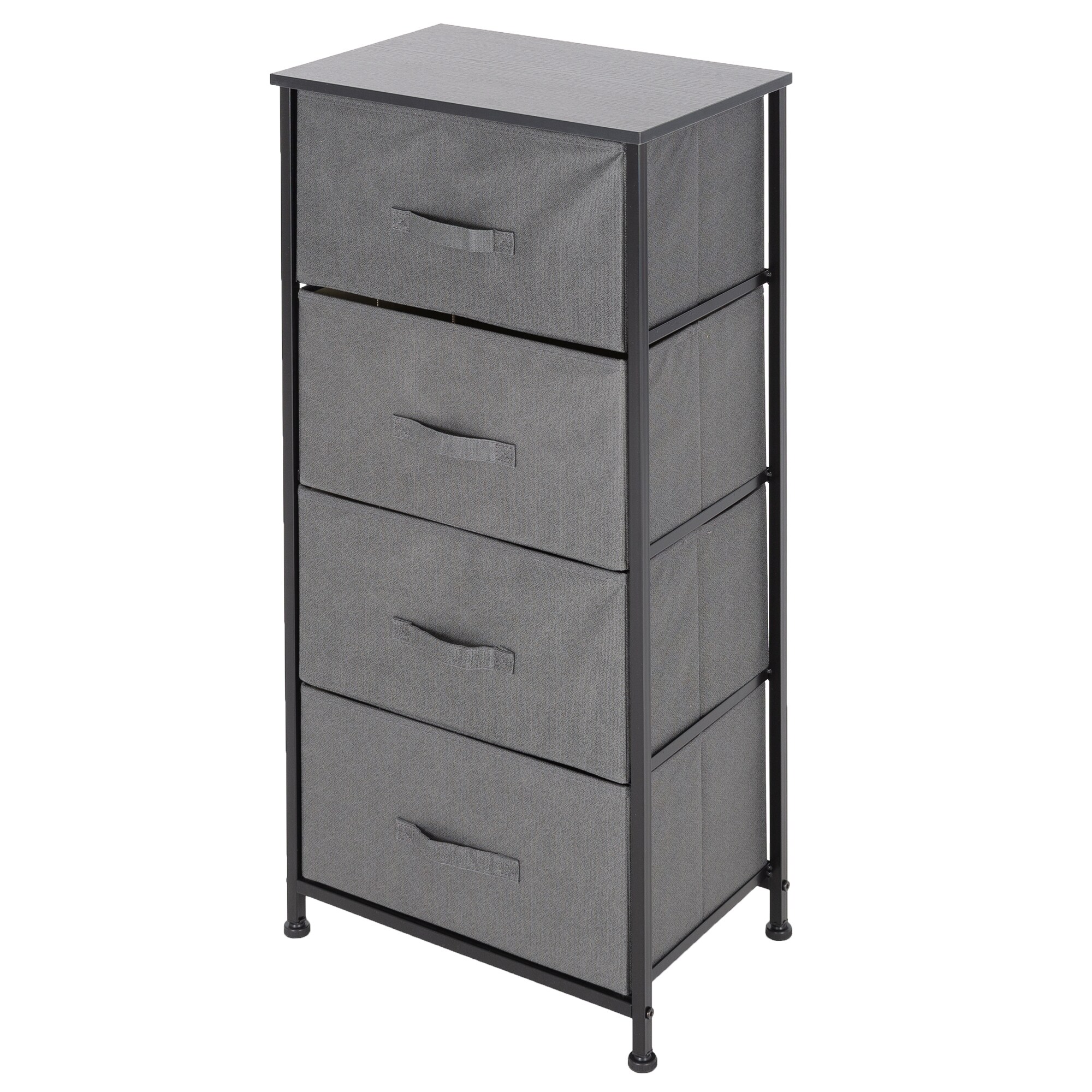 ML-Design låda skåp, byrå gjorda av tyg med fyra lådor, 45x30x94 cm, grå, svart