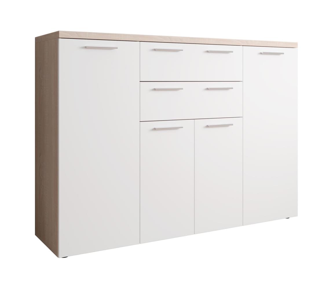 Byrå 120 cm med 8 lådor, färg: vit/Sonoma ek (överdel), mått: 120 cm x D: 39 cm x H: 102 cm