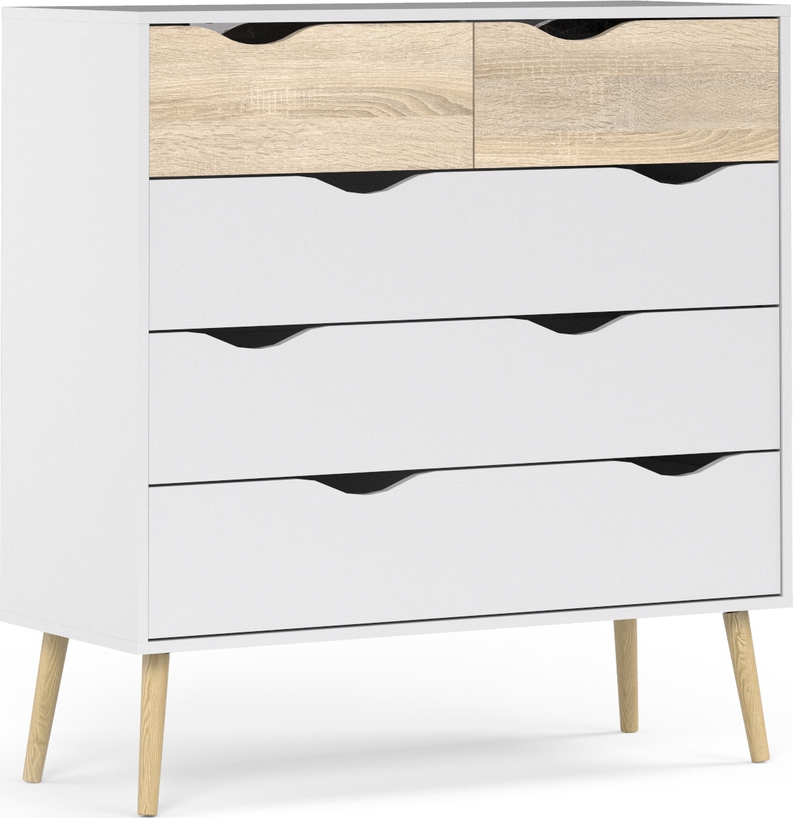 Byrå AMANI - 6 lådor - MDF - Vitlackad och ek