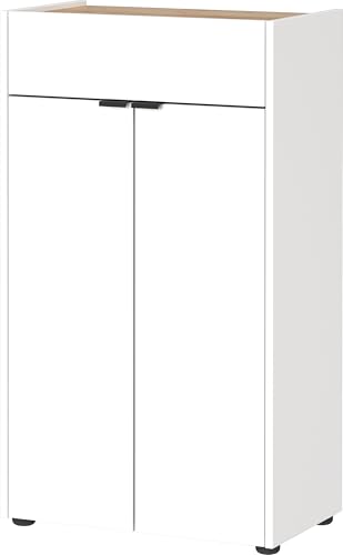 trendteam smart living – Ciara – byrå – vit högglans/ek – stativskåp med halkfri dörr – (B x H x D) 37 x 82 x 31 cm – kan monteras med justerbart hyllor – vänster eller höger dörr