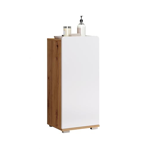 trendteam smart living – Mezzo – byrå – vit/ek mörk – badrumsskåp – (B x H x D) 37 x 79 x 31 cm – dörr med modern fräsning och 1 låda – ekfärgad accent