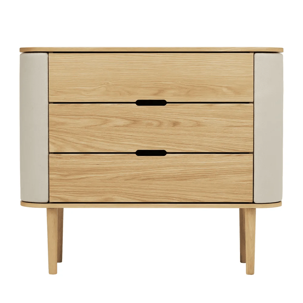 Demeyere Byrå med 3 trendiga lådor - industriell stil - Hamilton ek färg och vita ytbehandlingar - 91 x 75 x 40 cm