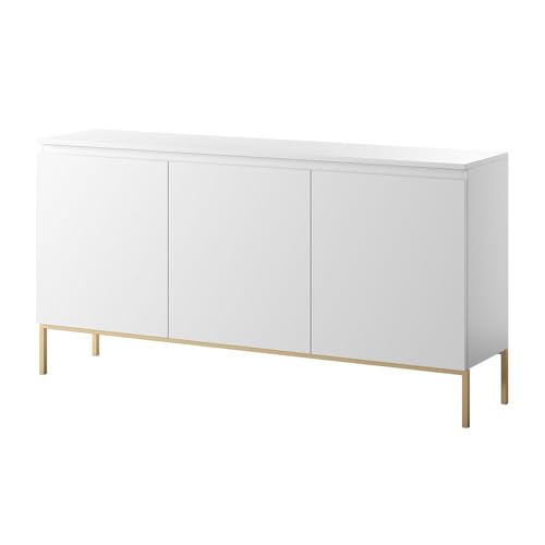 Selsey Byrå skåp med 3 dörrar 77 x 150 cm på gyllene ben förvaringsskåp för sovrum vit bemmi, en storlek