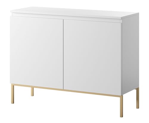 Selsey Byrå skåp med 2 dörrar 77 x 100 cm på gyllene ben förvaringsskåp för sovrum vit bemmi, en storlek