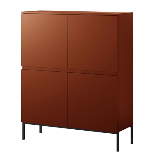 Selsey Byrå skåp förvaringsskåp 100 cm 4 dörrar 8 fack tegelröd svarta ben Bemmi