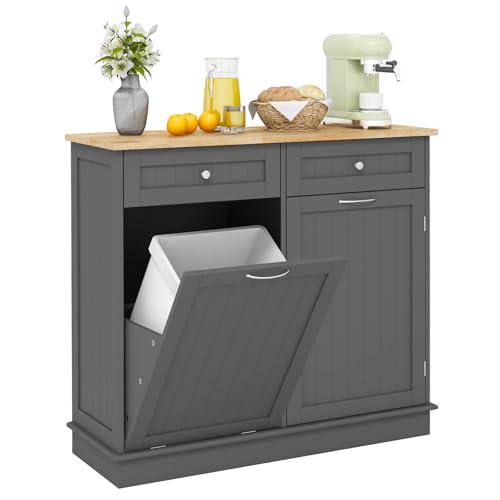 COSTWAY Byrå för papperskorg 42 L, köksskåp med stor bänkskiva och 2 lådor och justerbar hylla, soptunnskåp med soptunnhållare, skåp för kök utan papperskorg (grå), KC54756DE
